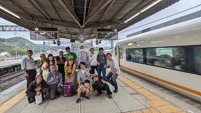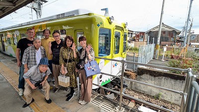 台風の余波でお天気はもうひとつでしたが、無事に青山町駅での合流に成功し、ホームで青山町車庫での撮影会の終わった皆様にお会い出来、お話もたくさん〜〜旧交を温め、お初の方には名刺をお渡ししてのご挨拶も。。。。。。