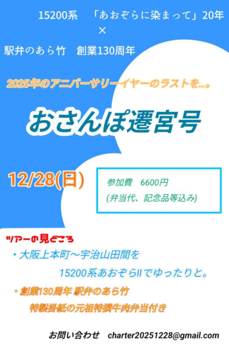 ☆12月28日(日) 近鉄あおぞらU「おさんぽ遷宮号」に特別掛け紙付き元祖特撰牛肉弁当で参画!!