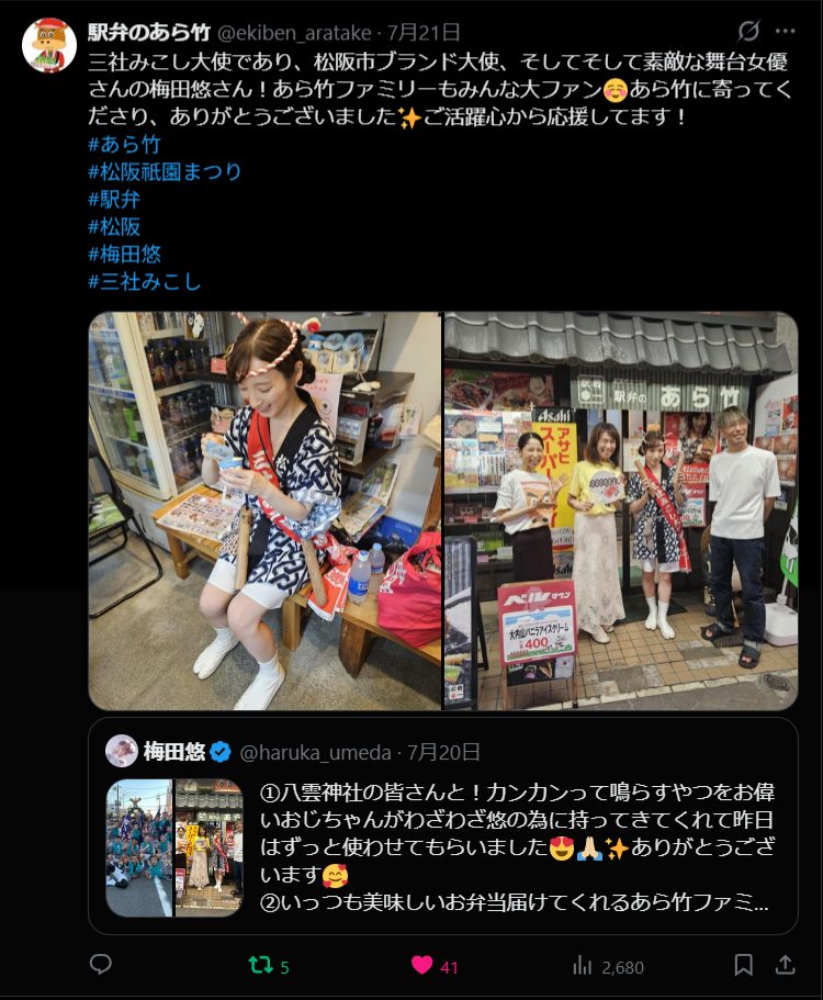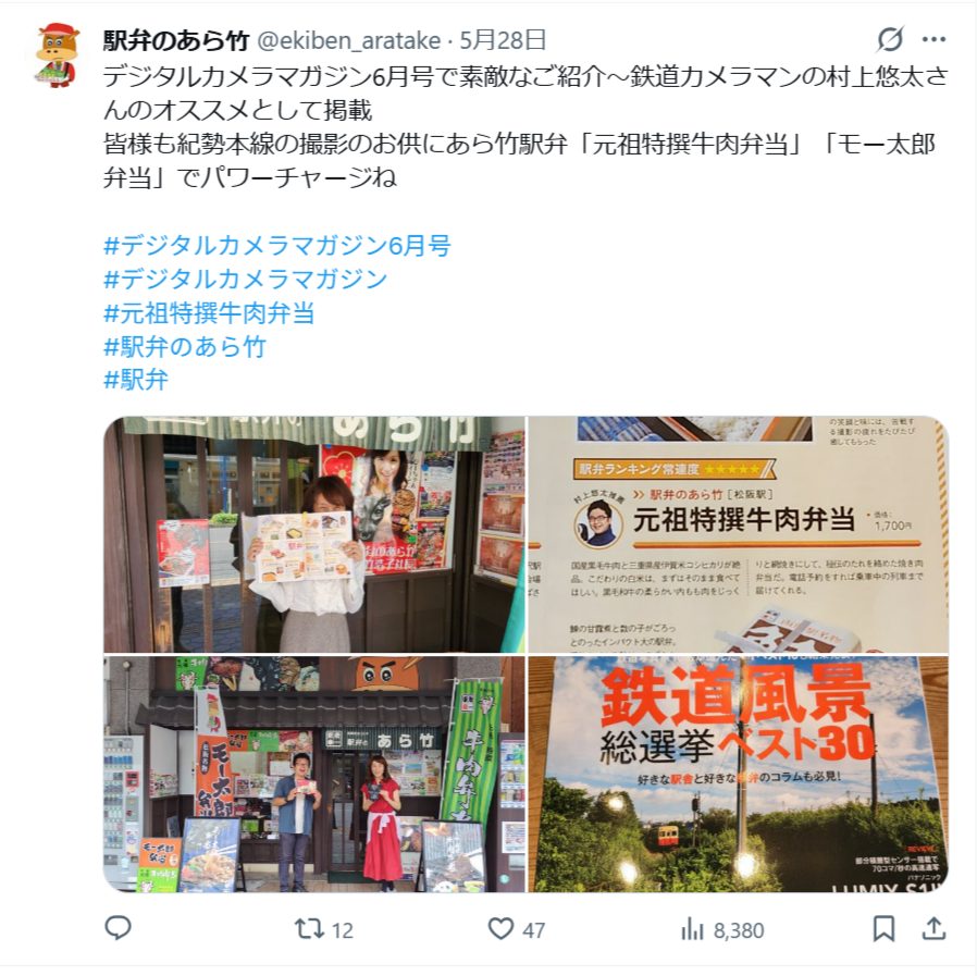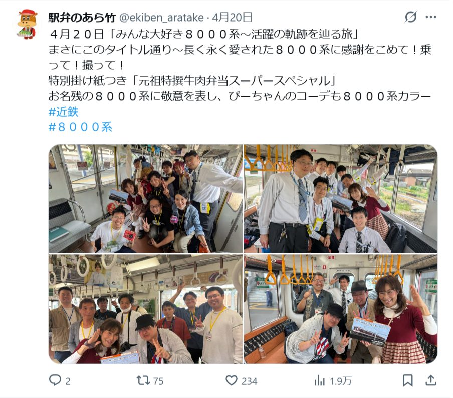 ぴーちゃんレポートはこちら https://www.ekiben-aratake.com/ibentojilyouhou/2025/0412-8000tour/index.html