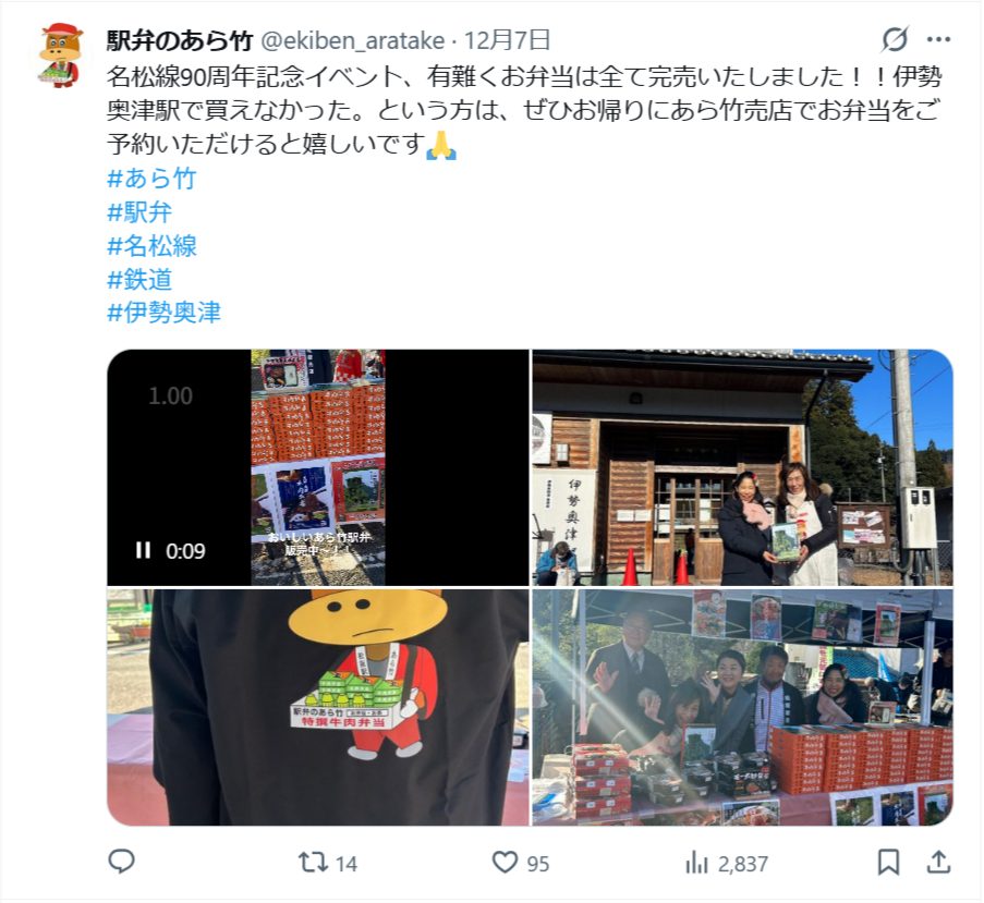 ぴーちゃんレポートはこちら https://www.ekiben-aratake.com/ibentojilyouhou/2025/1115-90th/index.html