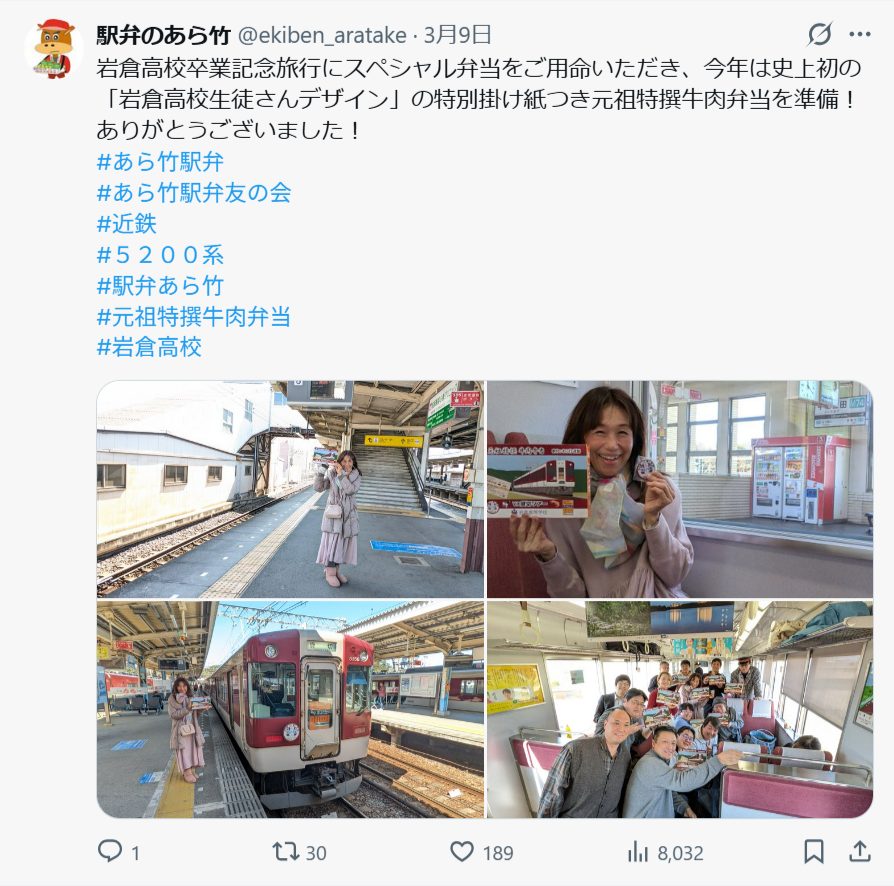 ぴーちゃんレポートはこちら https://www.ekiben-aratake.com/ibentojilyouhou/2025/0309-iwakura/index.html