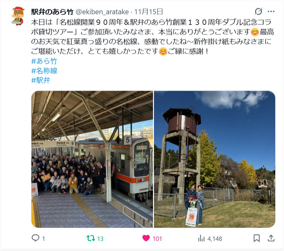 11月15日「名松線開業90周年&駅弁のあら竹創業130周年記念コラボ貸切ツアー」開催!!
