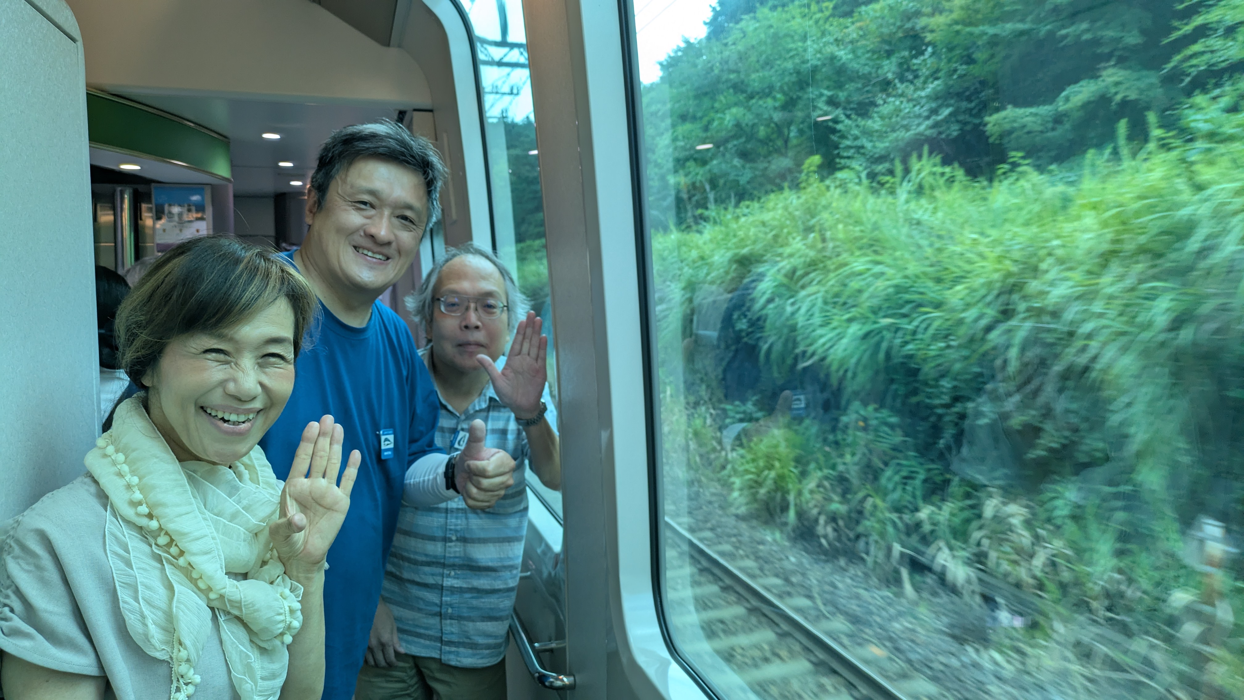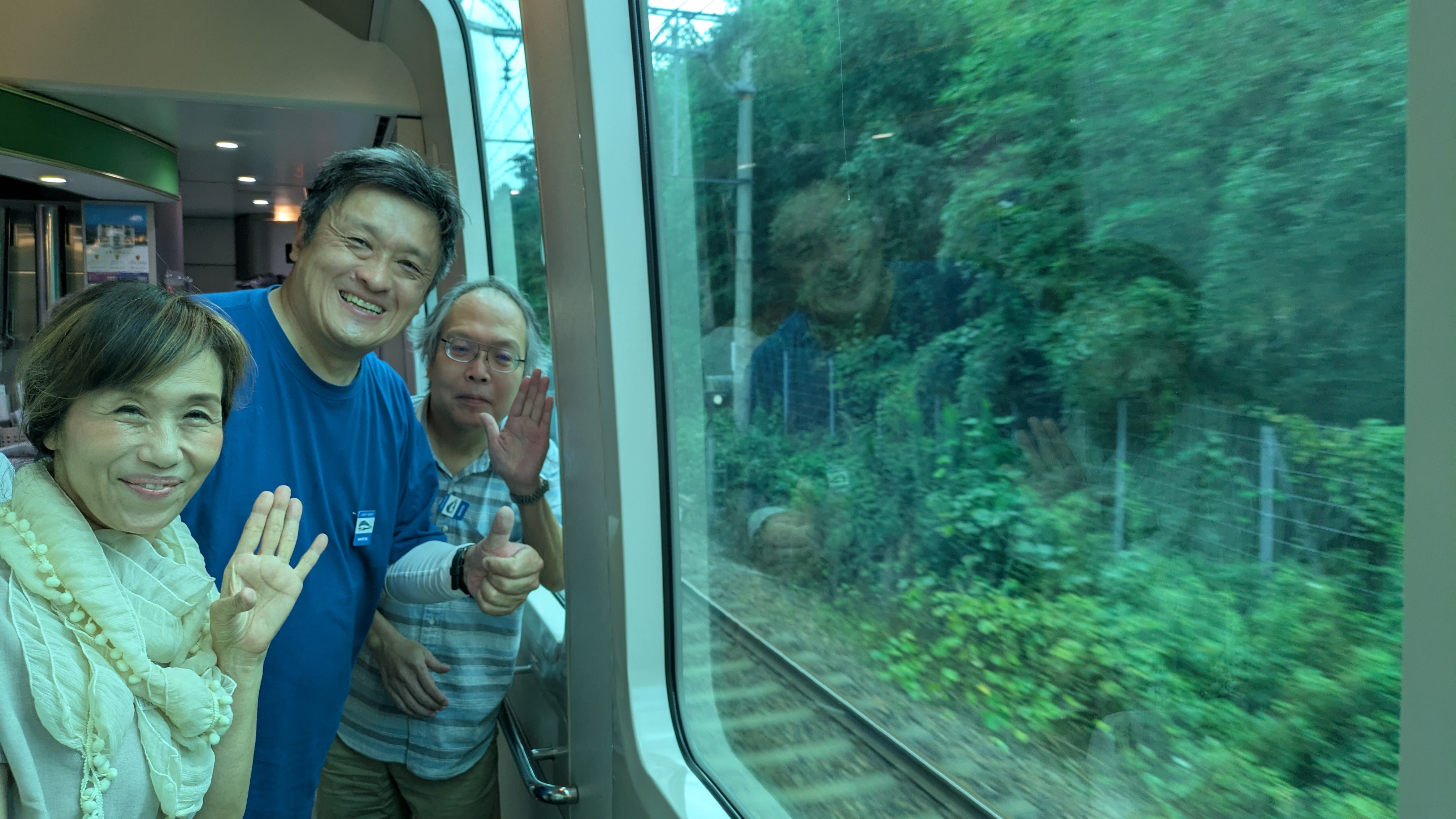 (KさんのTシャツは、前回第2回目の「特急乗り継ぎ旅」の記念品~~いい感じ~~ぴーちゃんも欲しい~~~笑い!!!!)