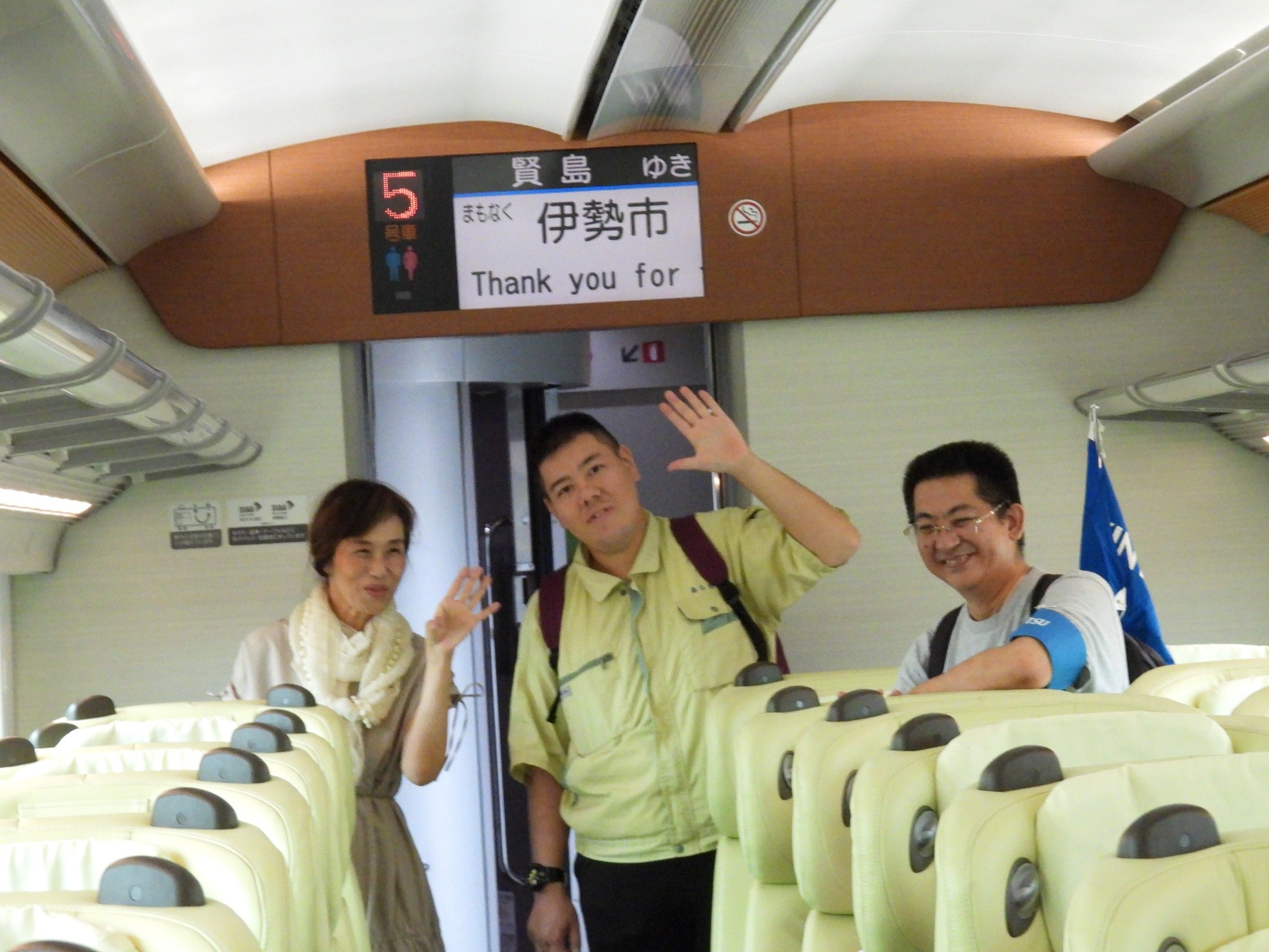 「しまかぜ」と宇治山田ホームで記念撮影もしていただきました。