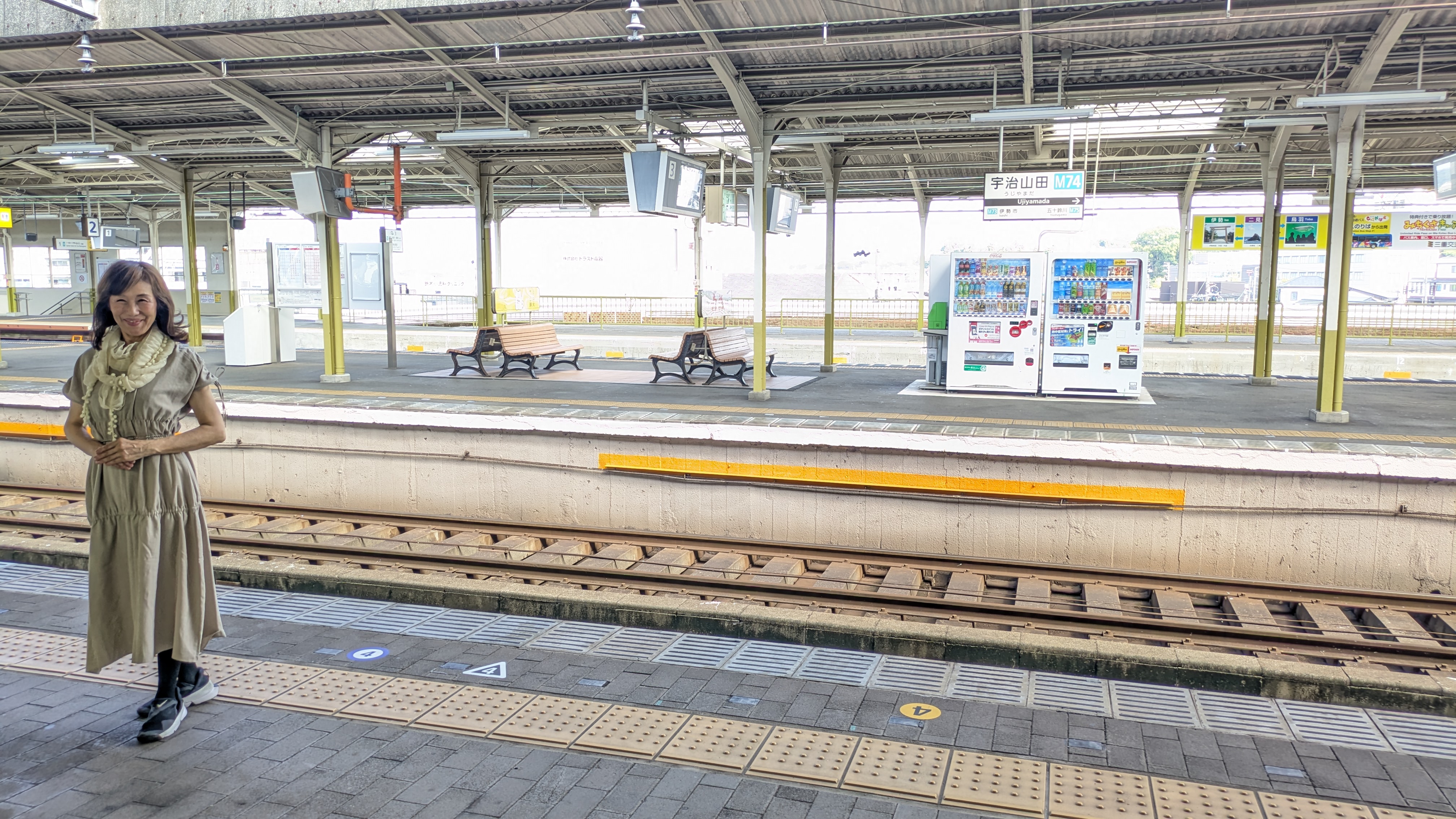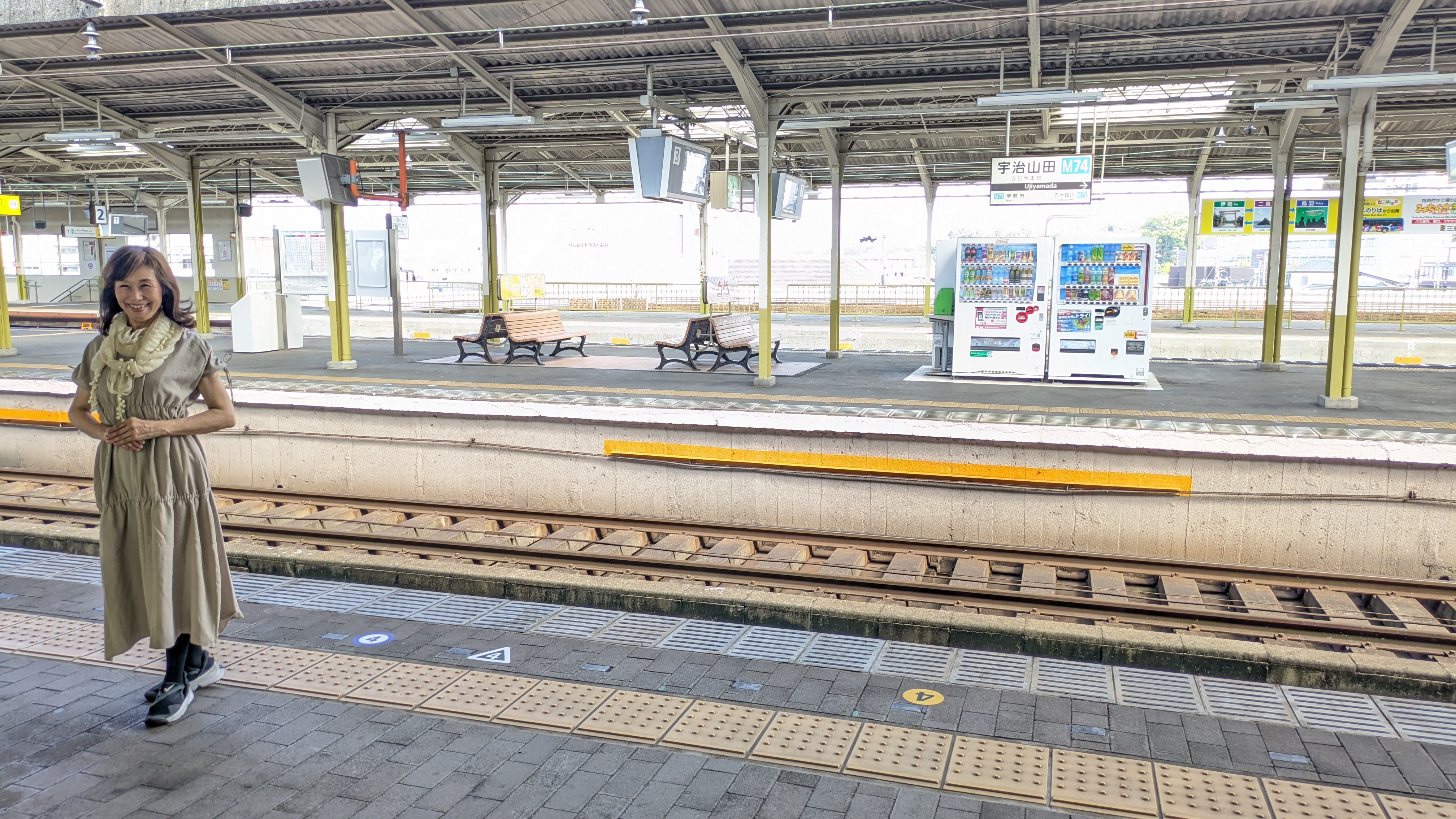 トラブルもなくひと安心の誰も居なくなった宇治山田駅ホームで記念写真を撮りました。