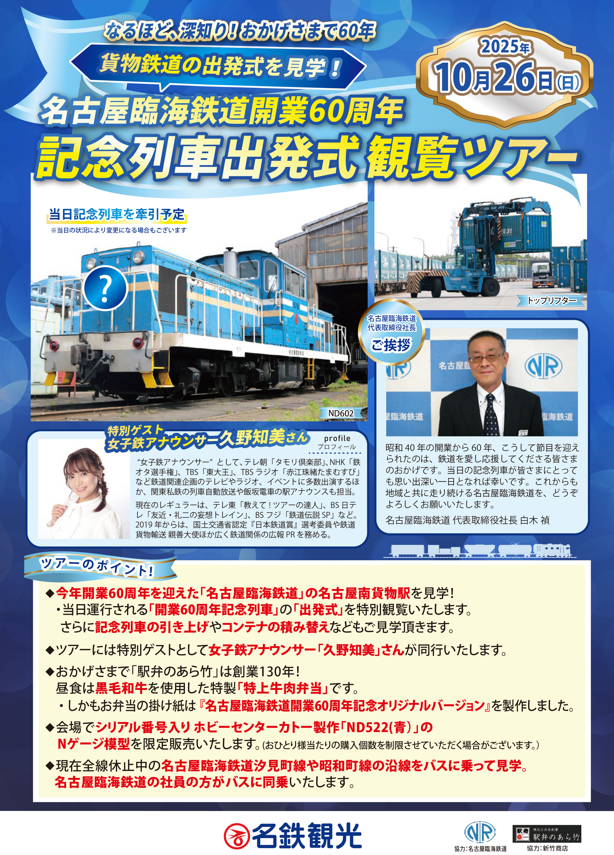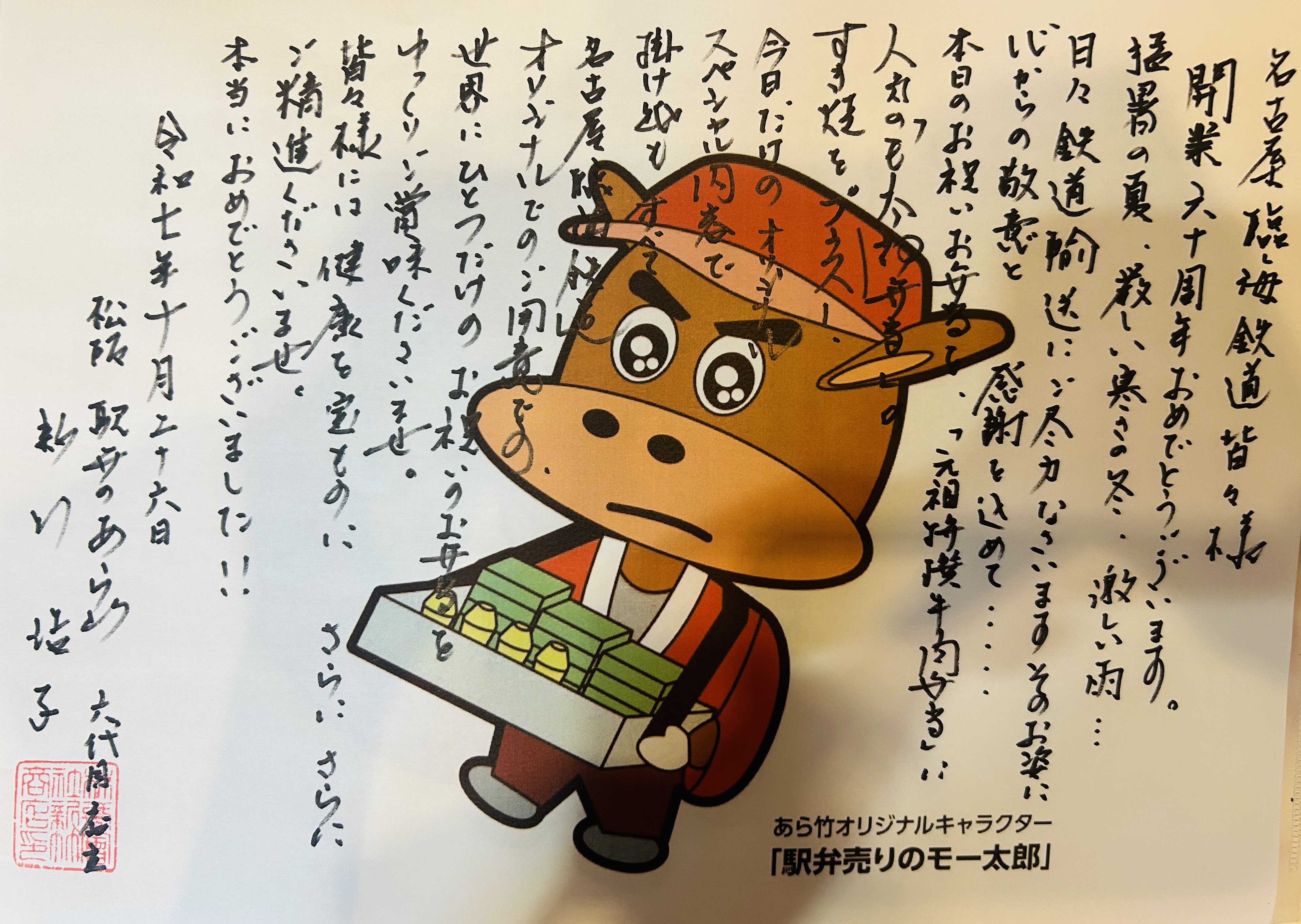 「名古屋臨海鉄道開業60周年&駅弁のあら竹創業130周年」のダブルのお祝いとして、その重責を担いました。
