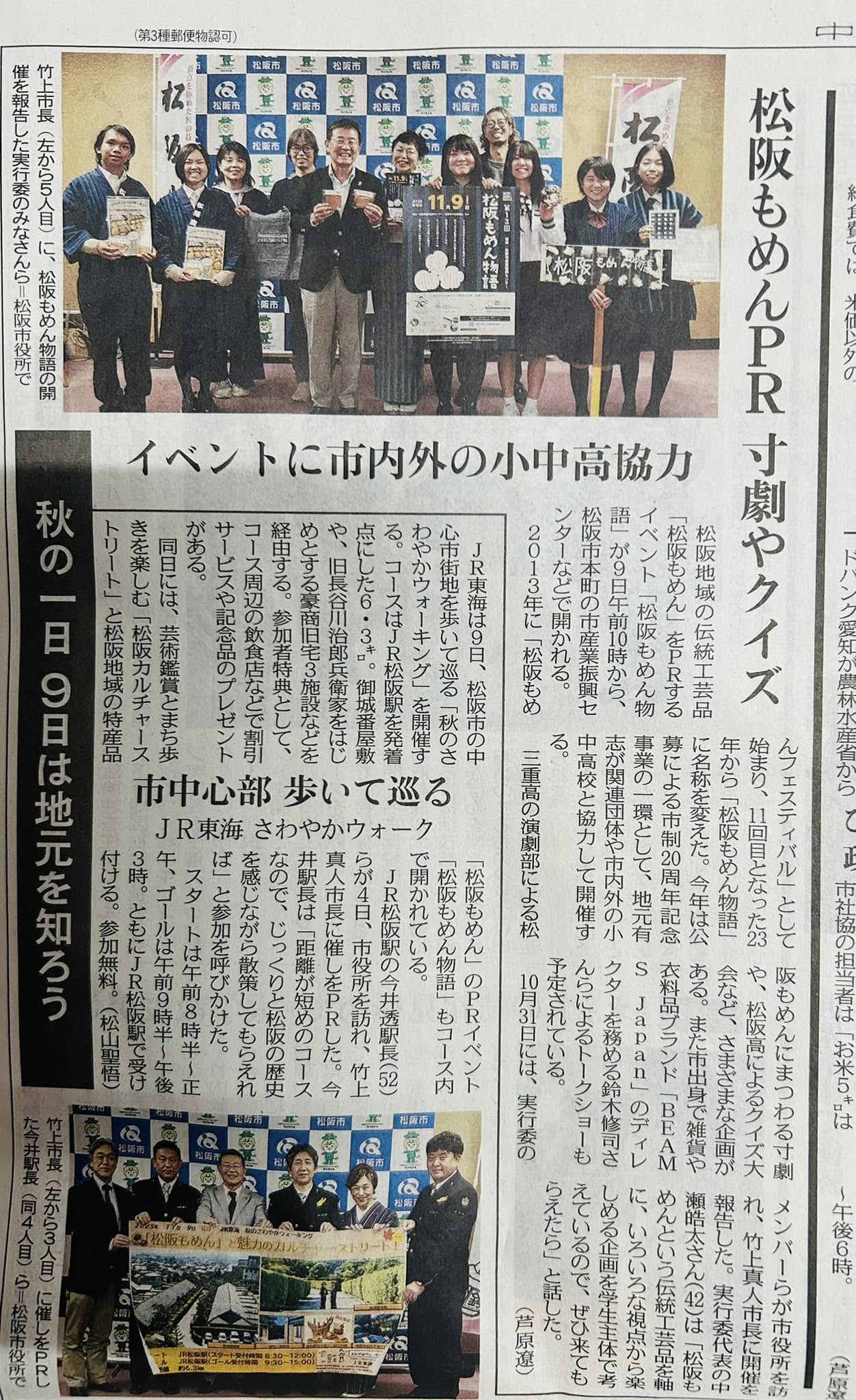 「夕刊三重」「中日新聞」が取り上げてくださって、良きPRとなりました(^^)