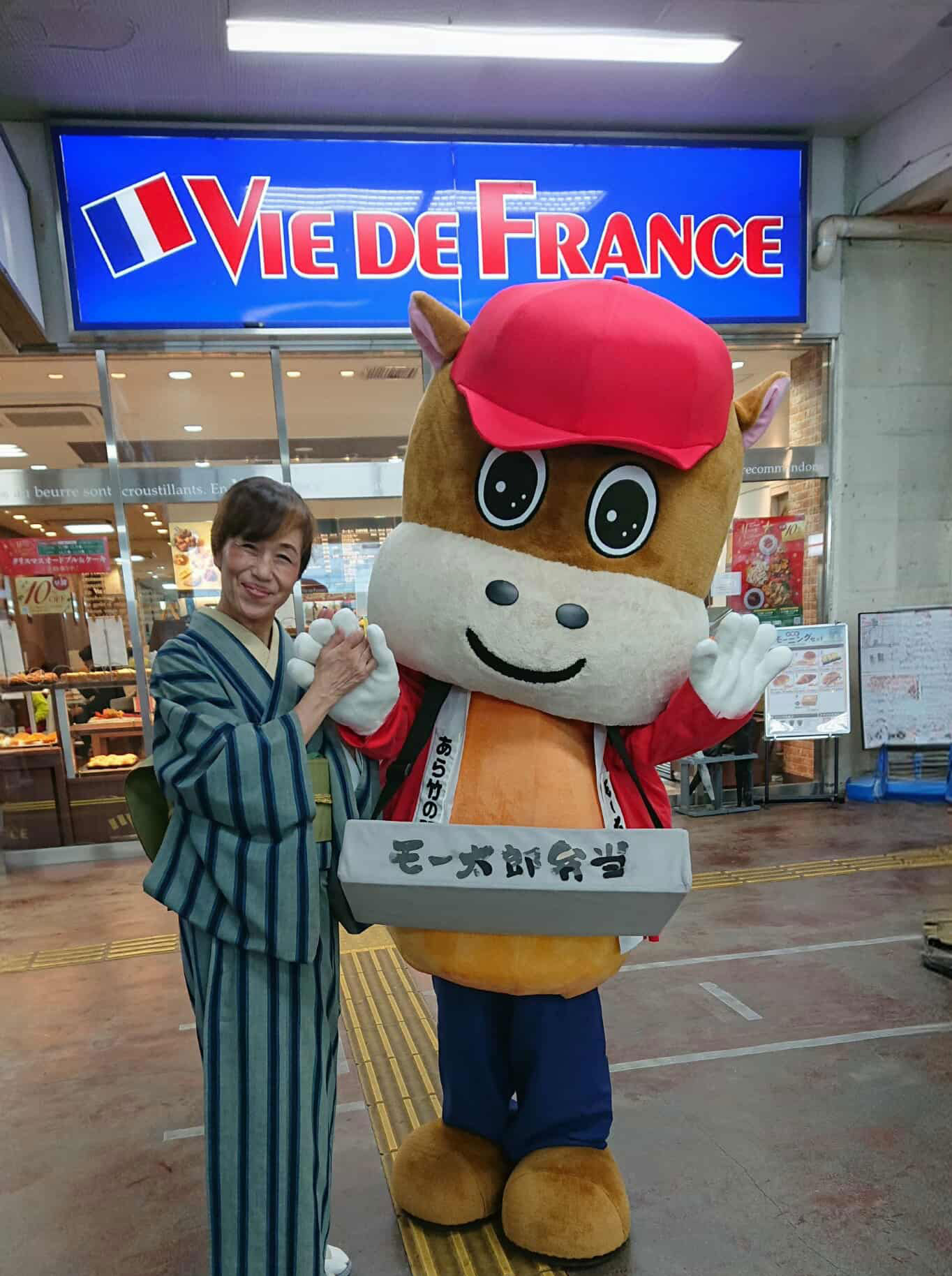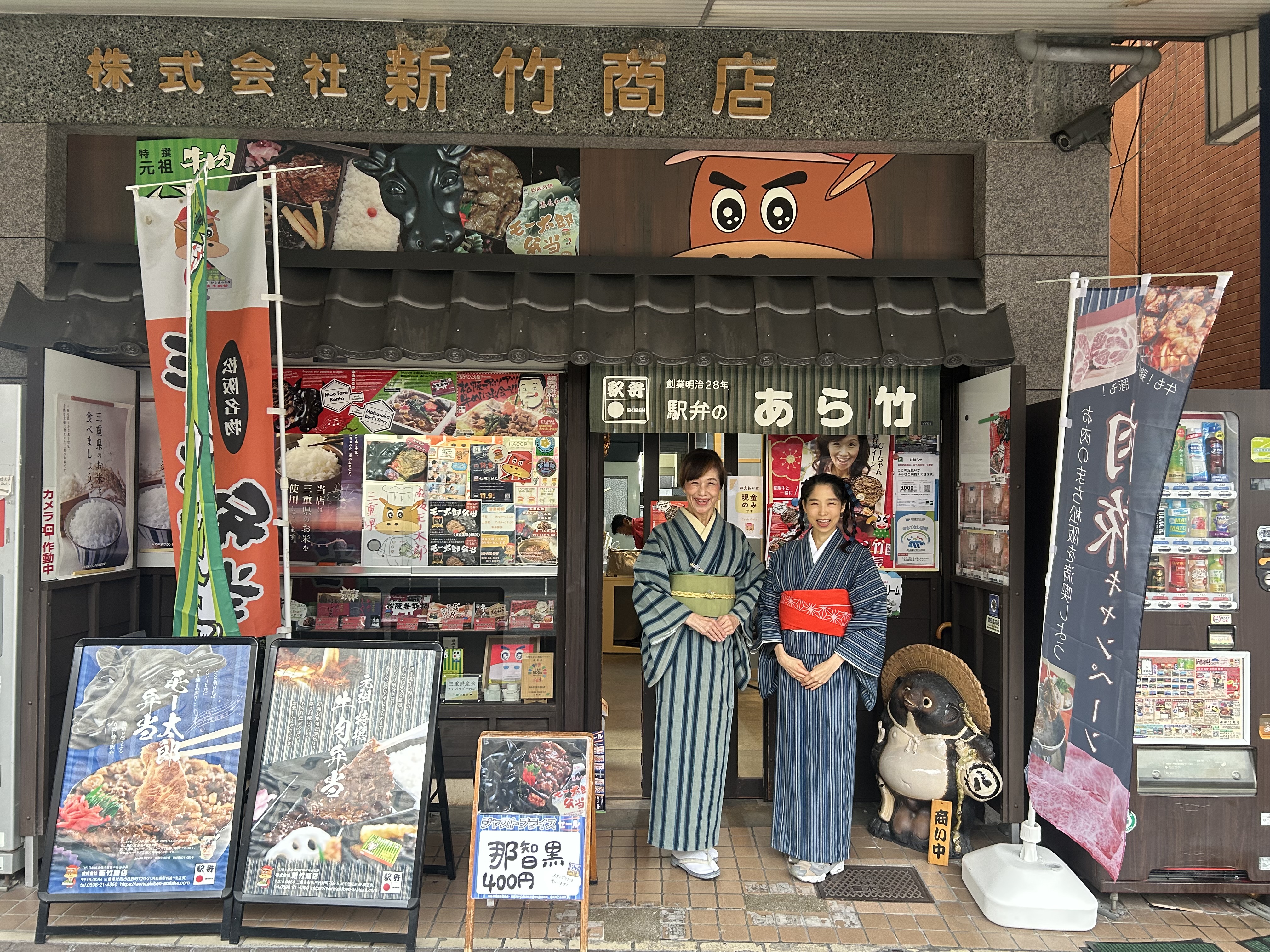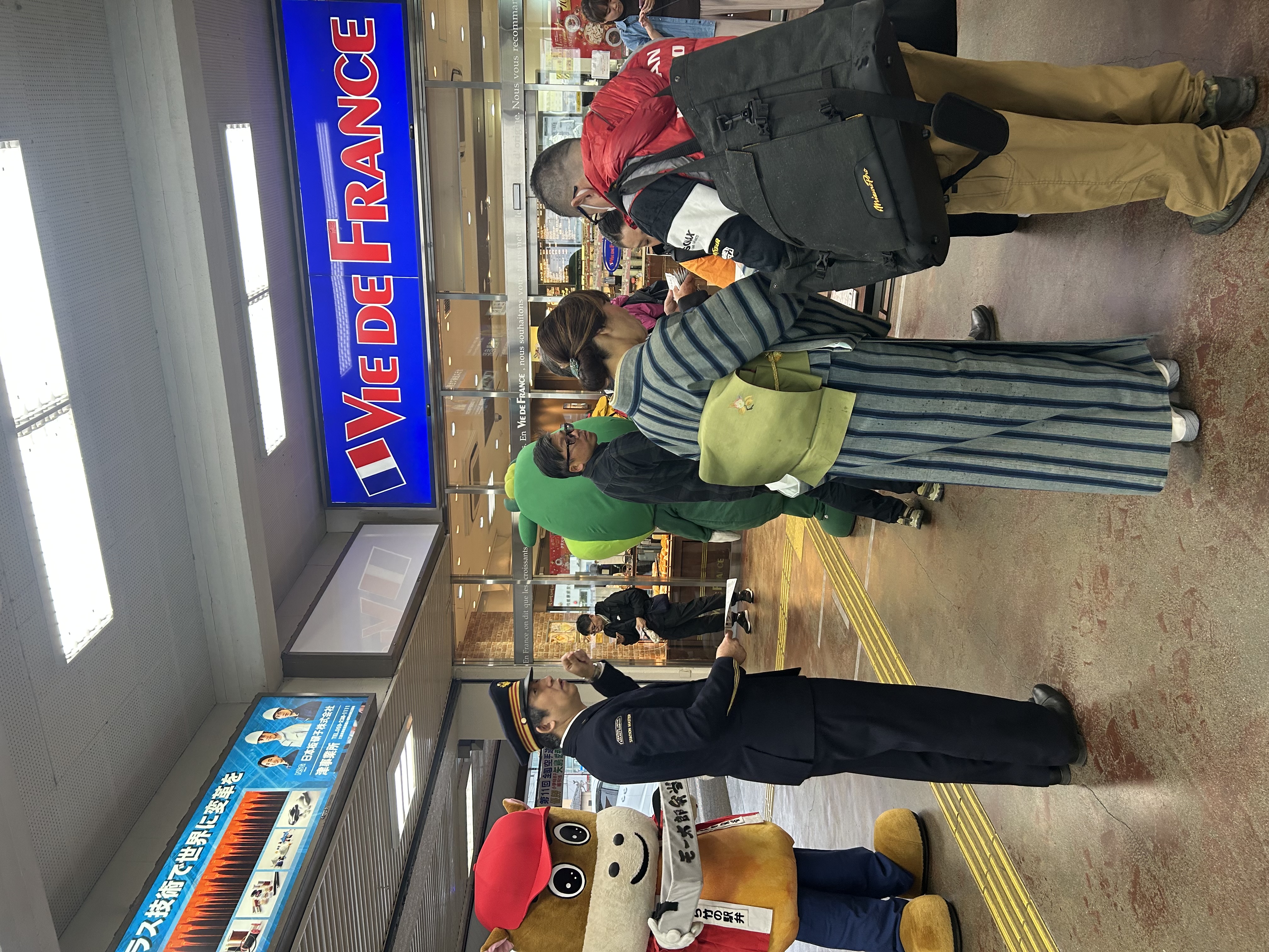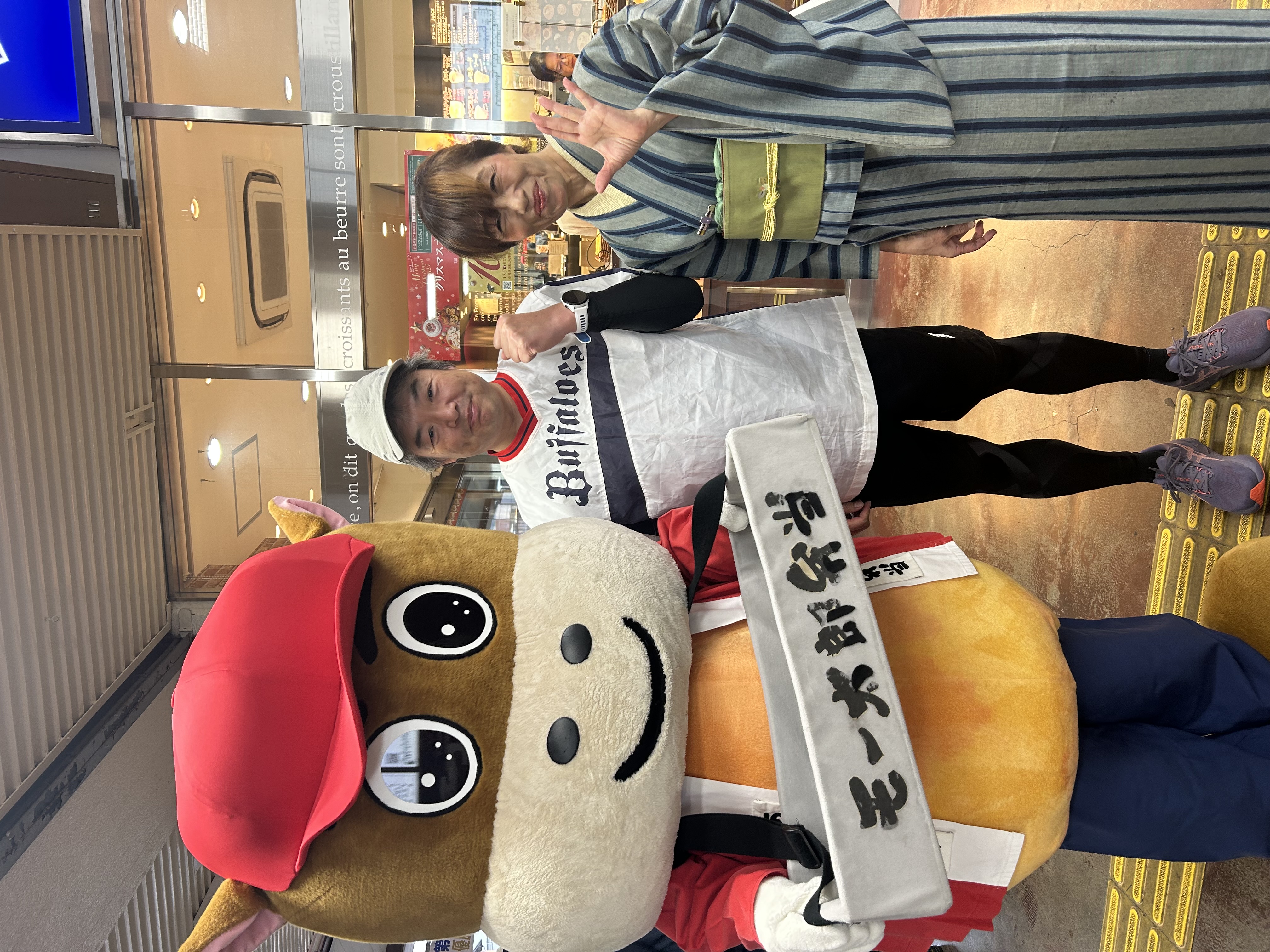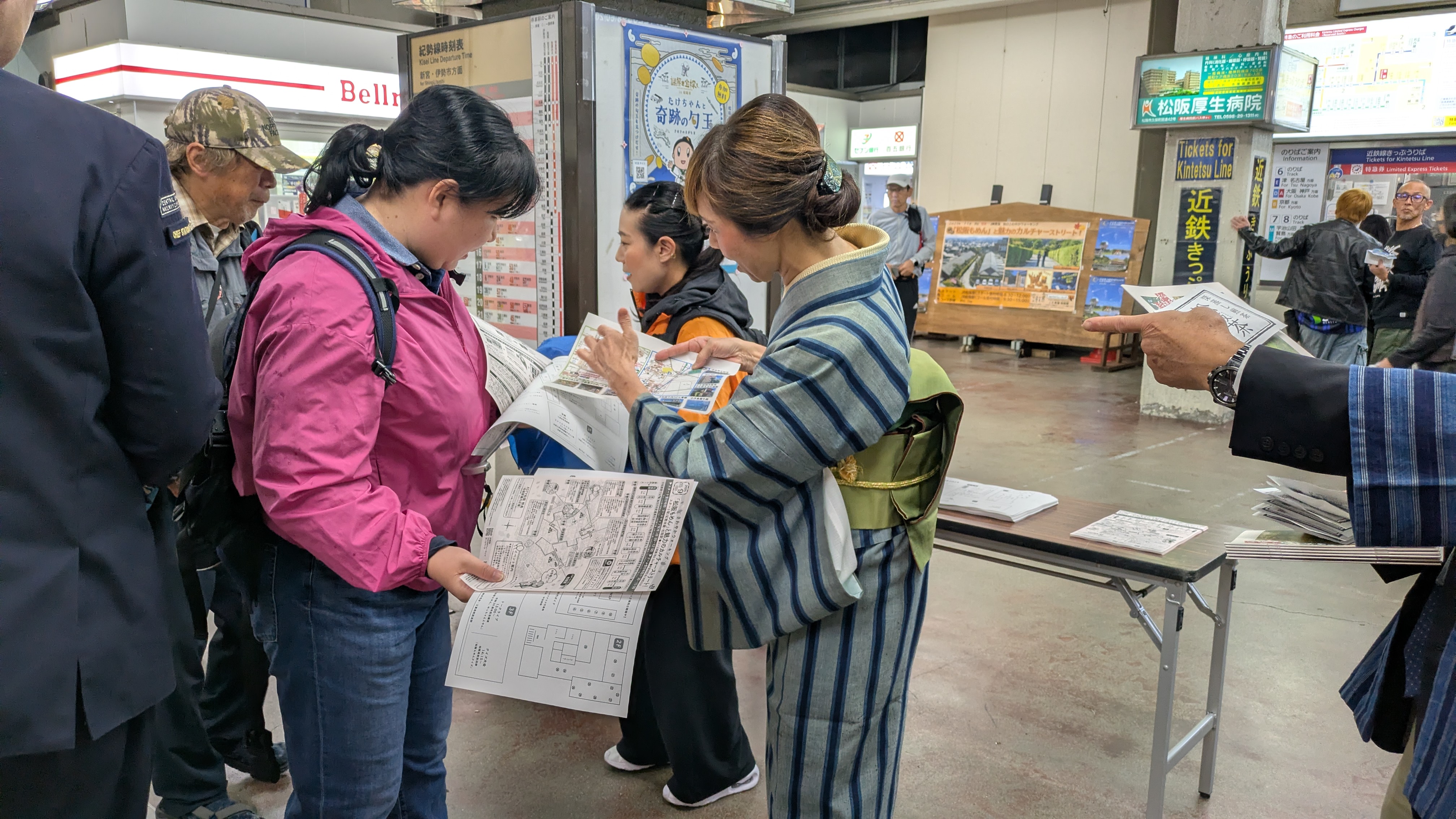 松阪駅でぴー&みーも、松阪もめんの着物姿でご参加いただくみなさまを全力の愛でお出迎えを!!
