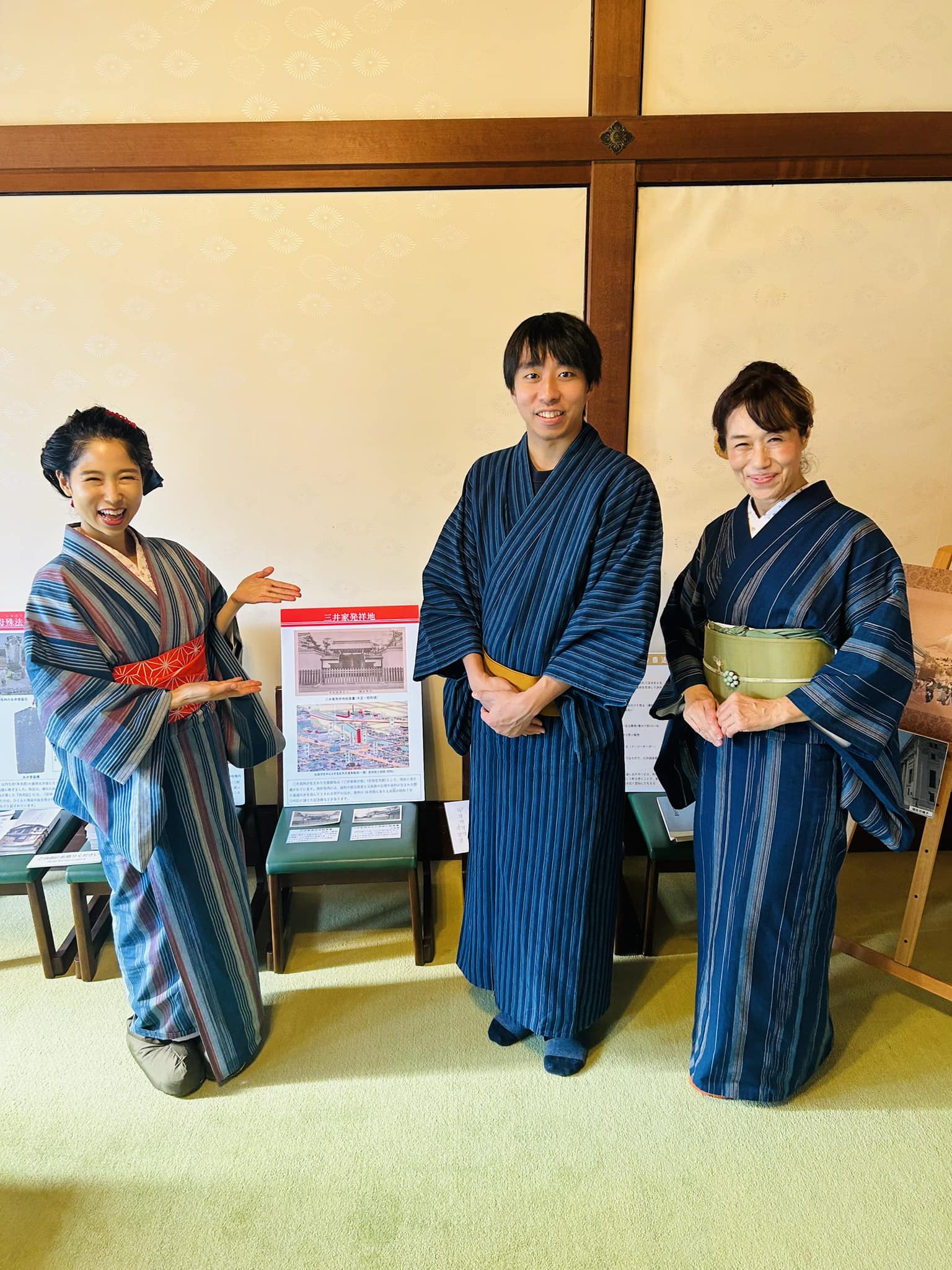 松阪もめんの着付け体験も大人気で、三井家の歴史を知るパネル展示では素敵な学芸員さんの説明も聞く事ができ、