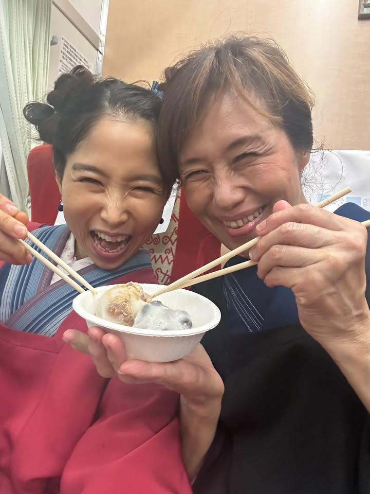 1日めの帰路では、友の会Hさんからの差し入れのお土産「出町柳・ふたば」の大福を夕方に近鉄特急の車内で食べて、元気回復~~~笑い(^^)