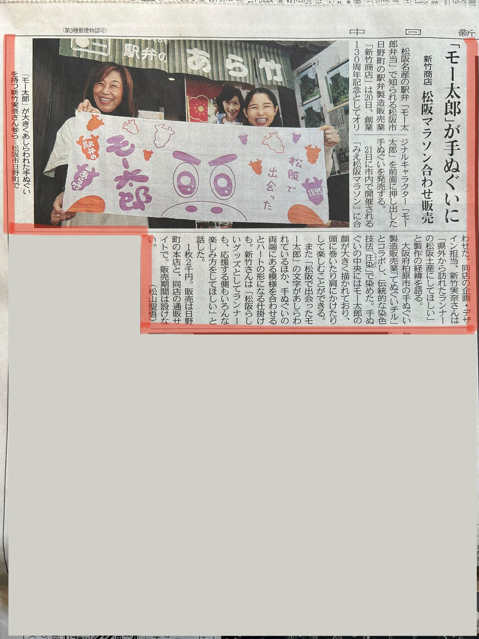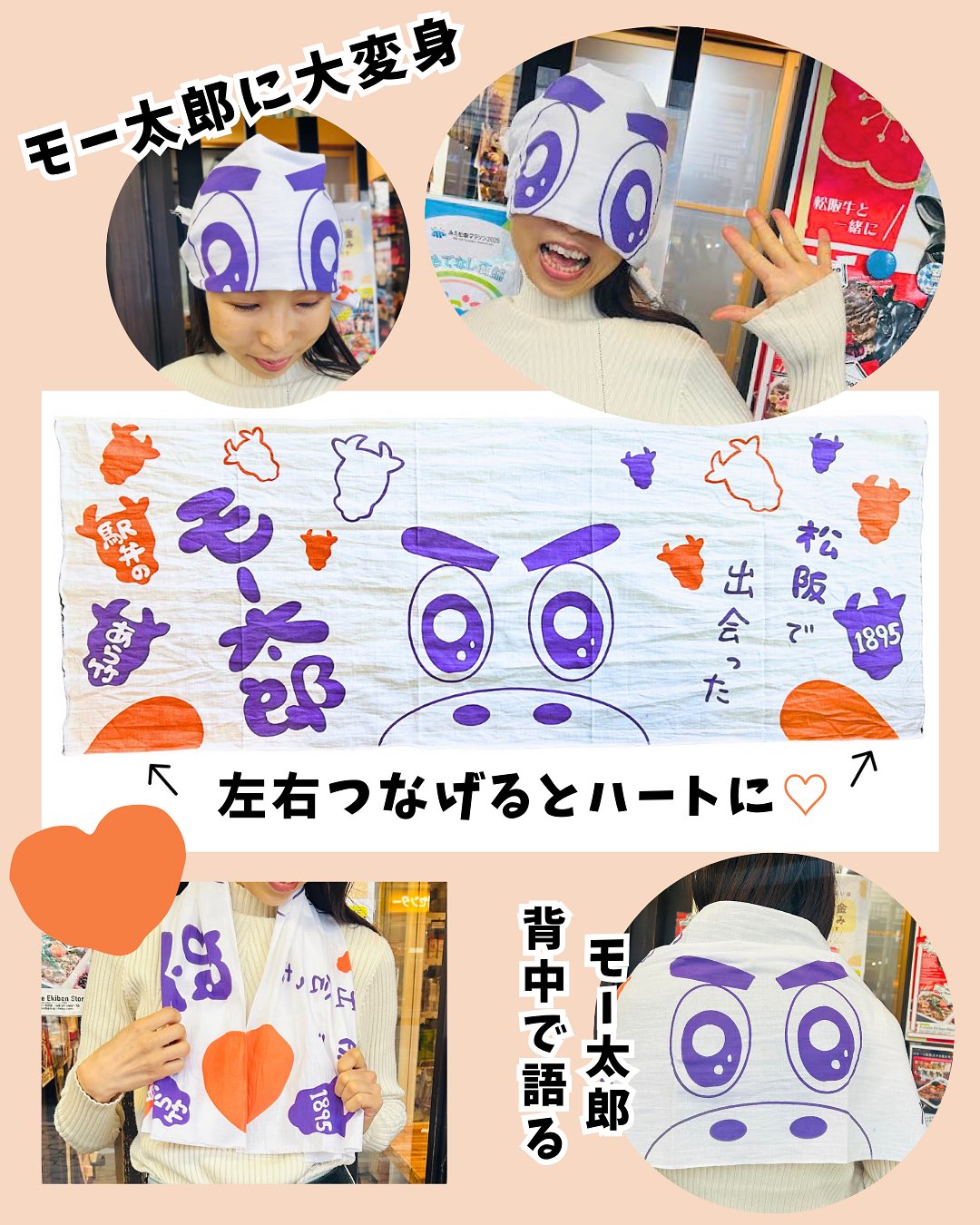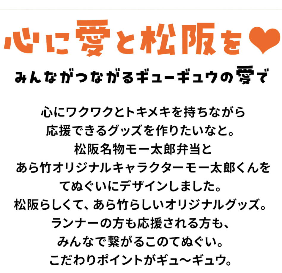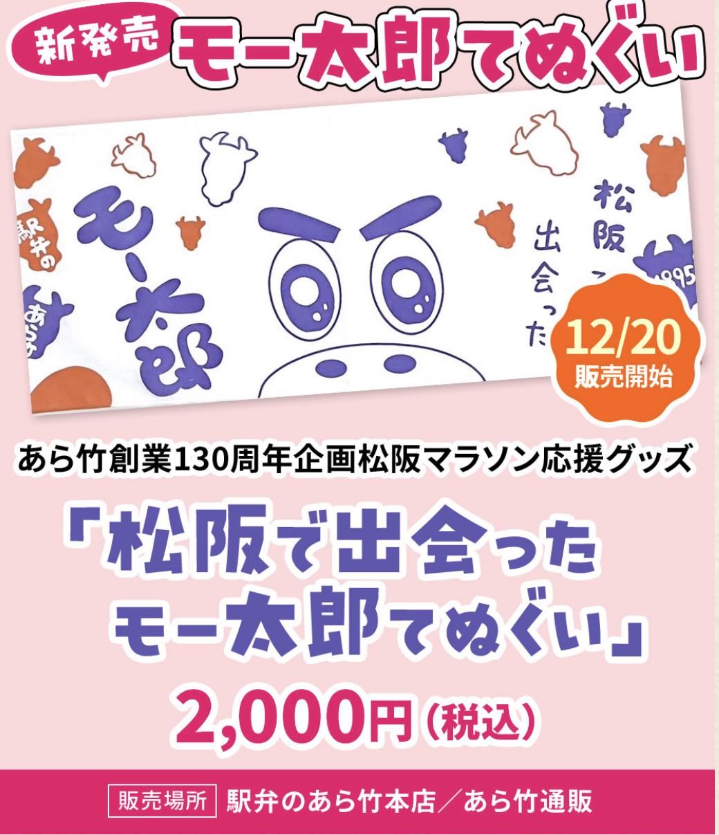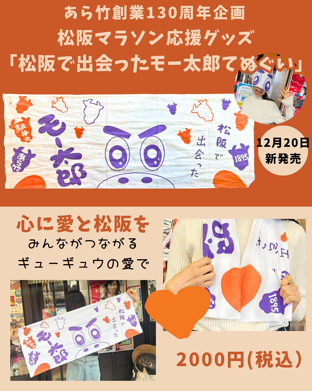21日新発売の「松阪マラソン応援グッズ」&「あら竹創業130周年記念グッズ」のモー太郎手ぬぐい!!