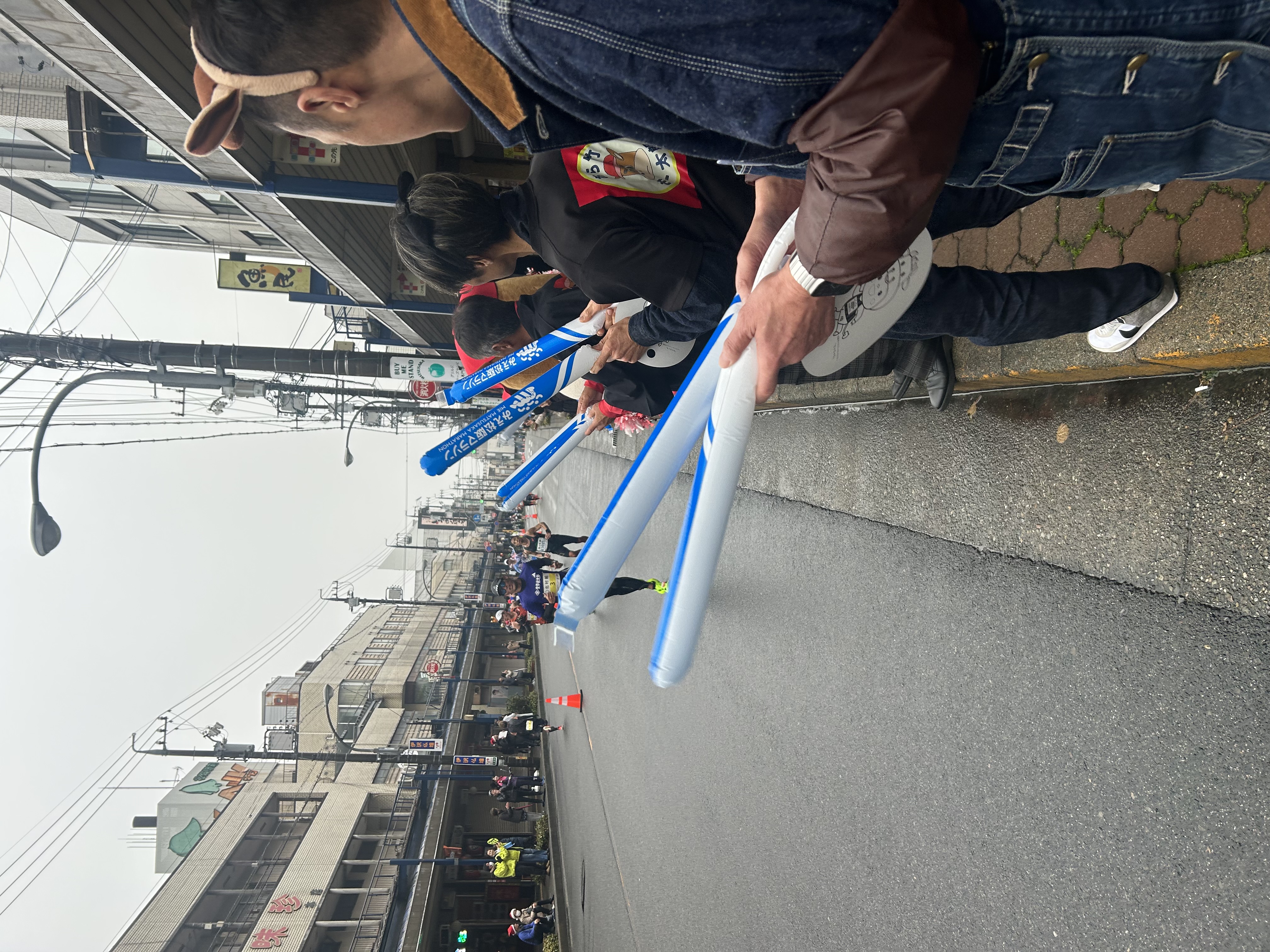 駅前を歩いてスタート会場へ向かうランナーさんへ声がけ!!!!!!!