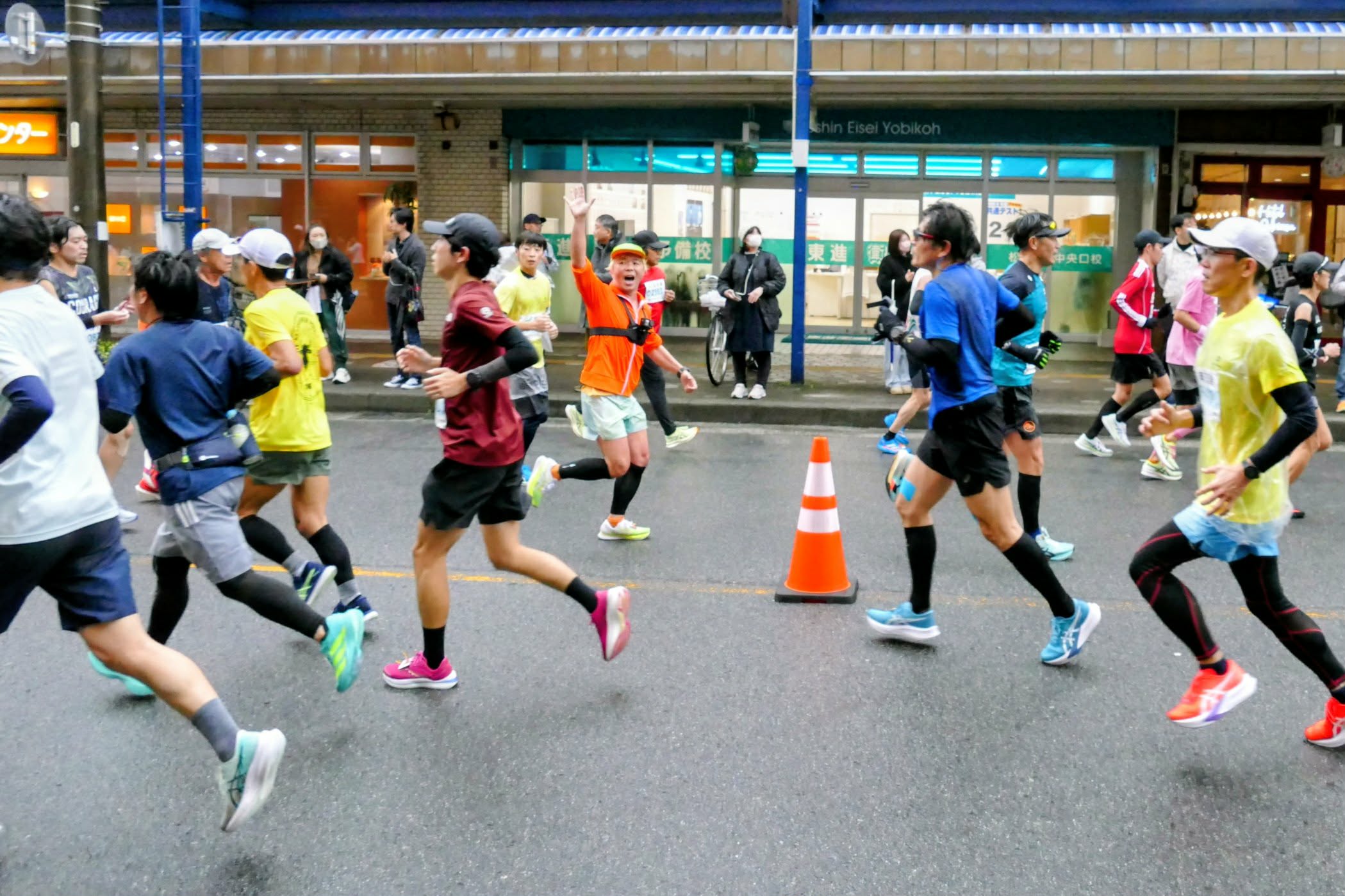 毎年走りながら、あら竹を応援してくださるたいへんありがたい尊敬するオレンジ田中さんにも