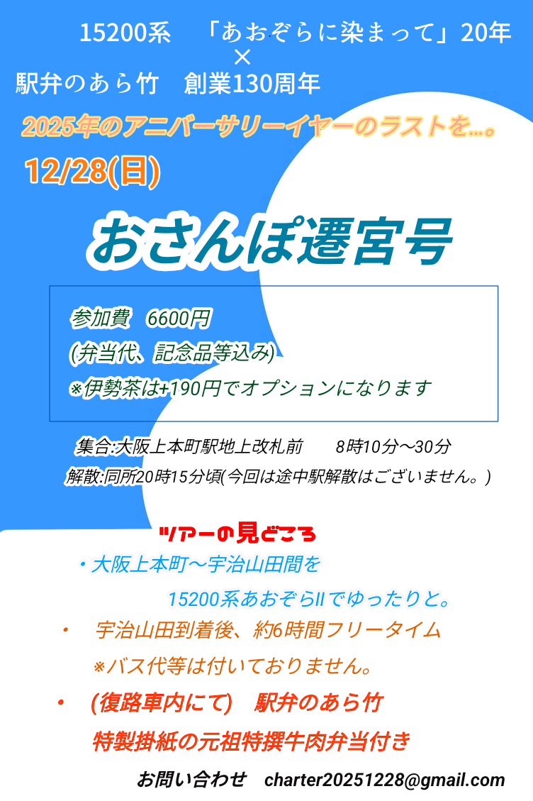 2025年12月28日 近鉄あおぞらⅡを貸切での「おさんぽ遷宮号」が昨年の開催中止のリベンジを果たしました!!!