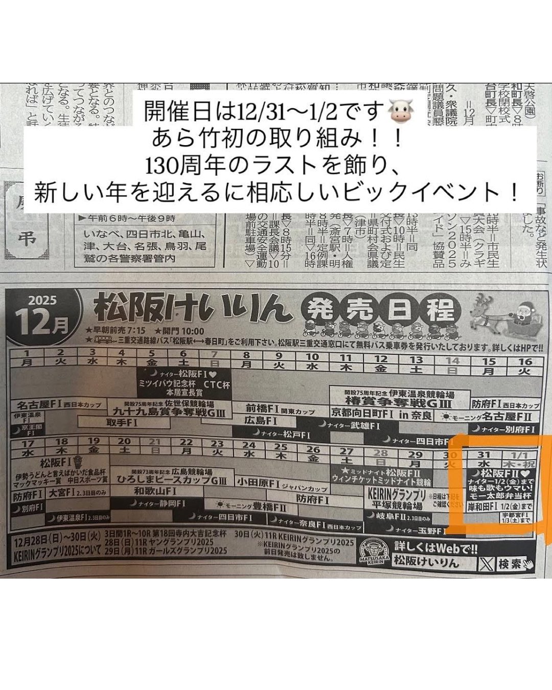 年末年始の開運招福は、「松阪けいりん」へ!!