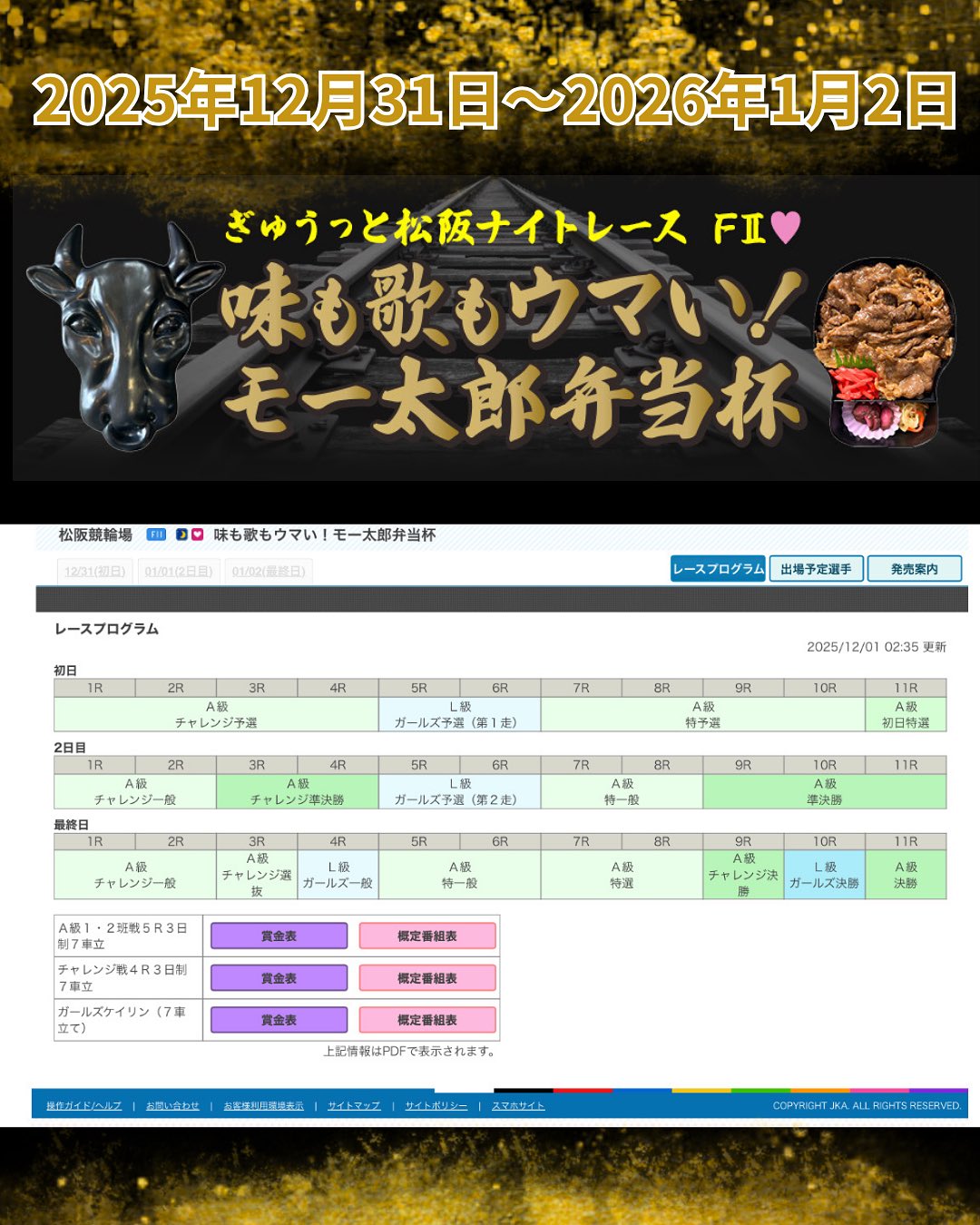 松阪競輪:松阪FⅡナイター『味も歌もウマい!モー太郎弁当杯』を開催!!
