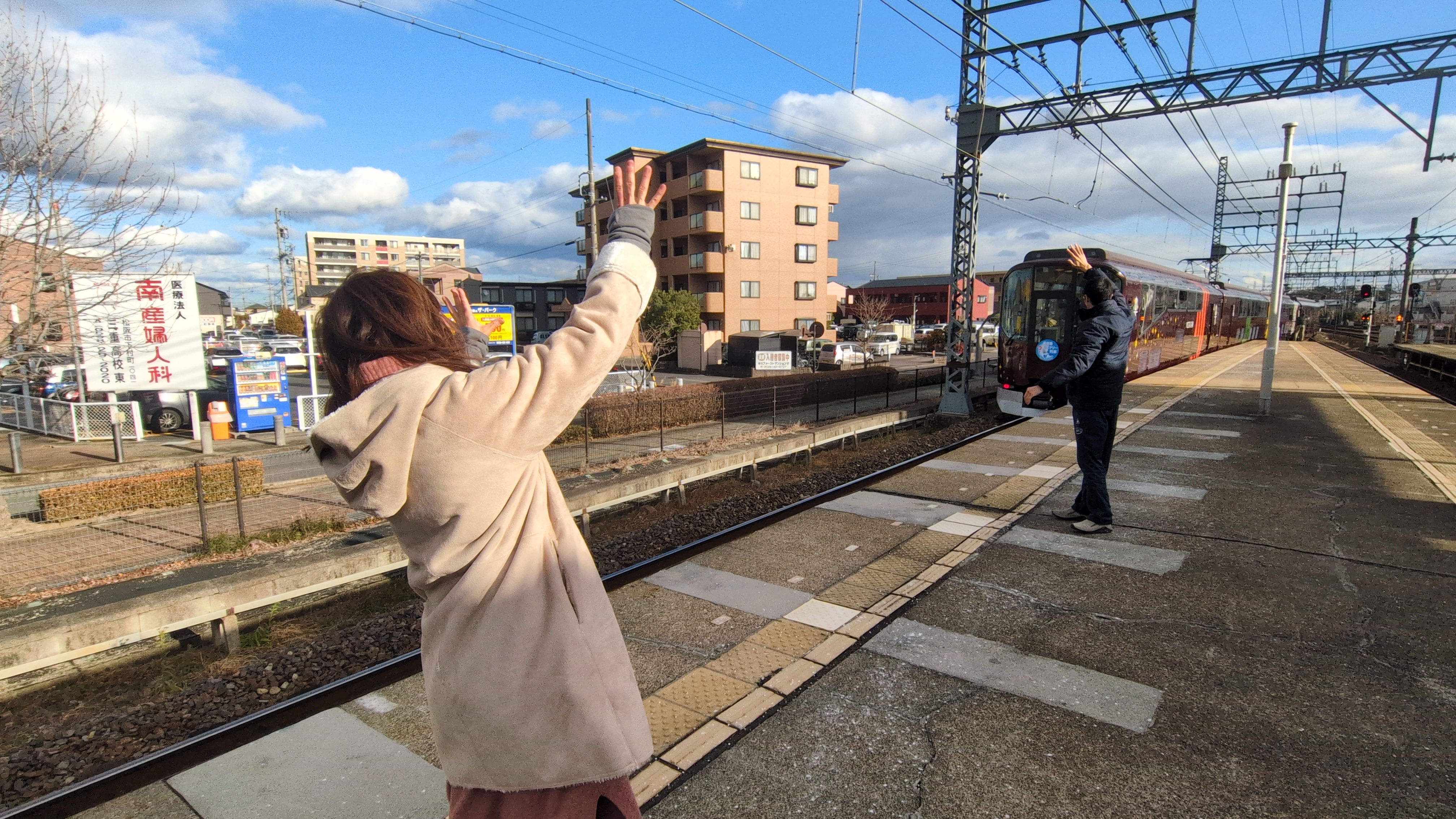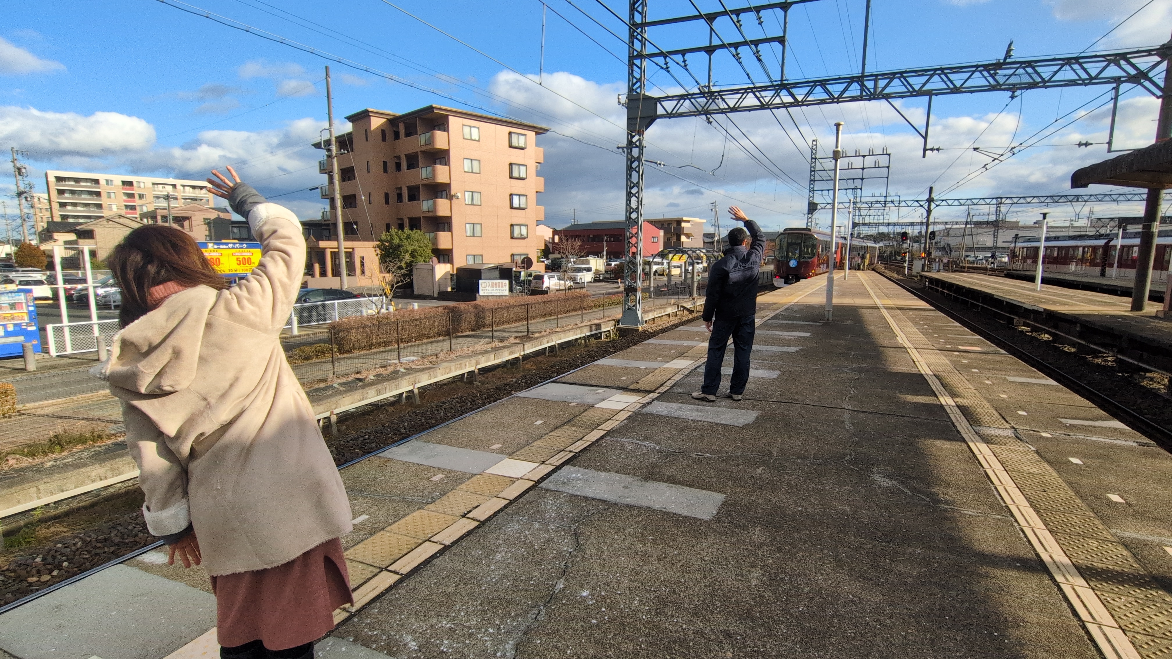 さらに、またまた雪が舞い散る伊勢中川でぴー&カズキ&アオちゃんの3人でお見送り。